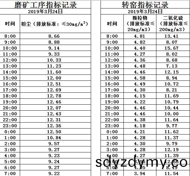 山(shan)東(dong)道恩(en)鈦業股(gu)份(fen)有限公司2019年3月24日煙氣數(shu)據