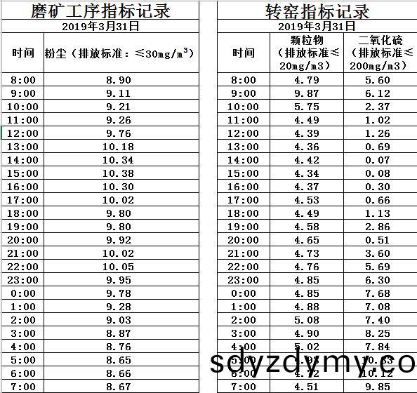 山(shan)東(dong)道恩(en)鈦(tai)業(ye)股(gu)份有(you)限(xian)公(gong)司(si)2019年(nian)3月31日磨(mo)鑛工序(xu)煙(yan)氣及(ji)轉窰煙氣(qi)指(zhi)標(biao)數(shu)據(ju):山(shan)東道恩(en)鈦業(ye)股份(fen)有限公(gong)司2019年(nian)3月(yue)31日磨(mo)鑛工序煙(yan)氣及(ji)轉(zhuan)窰(yao)煙氣指(zhi)標數據: