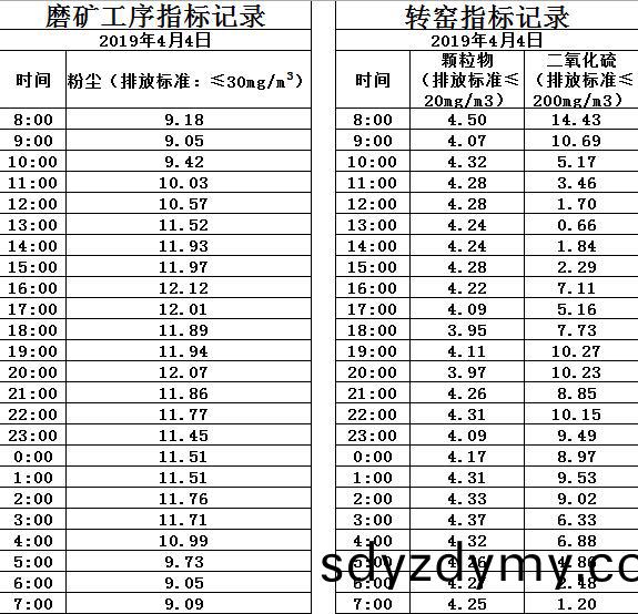 山東(dong)道(dao)恩(en)鈦(tai)業(ye)股(gu)份有(you)限公(gong)司(si)2019年4月(yue)4日磨鑛工(gong)序煙(yan)氣及轉(zhuan)窰煙(yan)氣(qi)指標數據:山東道(dao)恩(en)鈦(tai)業股(gu)份有(you)限公司2019年(nian)4月(yue)4日(ri)磨鑛工序煙氣(qi)及轉窰煙氣指標數據(ju):