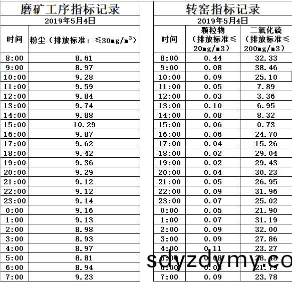 山東(dong)道(dao)恩鈦(tai)業股份有(you)限(xian)公(gong)司2019年(nian)5月(yue)4日(ri)磨鑛工序(xu)煙(yan)氣(qi)及(ji)轉(zhuan)窰(yao)煙(yan)氣(qi)指(zhi)標(biao)數(shu)據(ju):山(shan)東(dong)道(dao)恩(en)鈦(tai)業股份(fen)有限公(gong)司2019年(nian)5月(yue)4日(ri)磨(mo)鑛工序煙氣(qi)及(ji)轉窰(yao)煙氣(qi)指(zhi)標(biao)數(shu)據(ju):