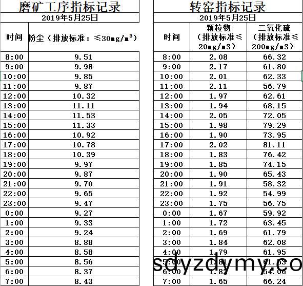 山(shan)東道恩(en)鈦(tai)業(ye)股份有限公司(si)2019年5月25日(ri)磨(mo)鑛(kuang)工序(xu)煙氣及(ji)轉(zhuan)窰(yao)煙氣指(zhi)標數據:山東(dong)道(dao)恩(en)鈦業(ye)股份(fen)有限(xian)公(gong)司(si)2019年(nian)5月(yue)25日(ri)磨(mo)鑛(kuang)工(gong)序(xu)煙氣(qi)及(ji)轉窰煙(yan)氣(qi)指標(biao)數(shu)據: