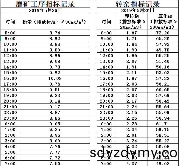 山(shan)東(dong)道(dao)恩(en)鈦(tai)業(ye)股(gu)份有限公(gong)司(si)2019年(nian)5月26日(ri)磨鑛(kuang)工(gong)序(xu)煙氣及(ji)轉(zhuan)窰煙(yan)氣指標數據:山東(dong)道(dao)恩鈦業(ye)股(gu)份有(you)限公(gong)司2019年(nian)5月(yue)26日(ri)磨鑛工(gong)序(xu)煙(yan)氣及(ji)轉(zhuan)窰煙(yan)氣指(zhi)標(biao)數(shu)據(ju):