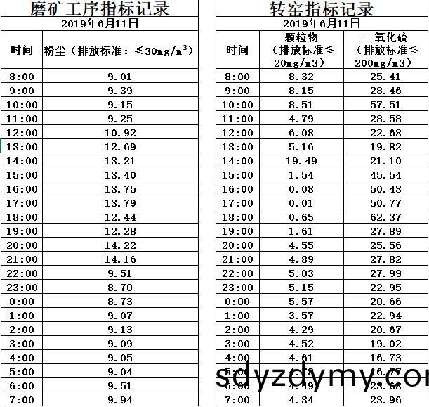 山東道恩鈦(tai)業(ye)股份有(you)限(xian)公司(si)2019年(nian)6月(yue)11日磨鑛工(gong)序(xu)煙(yan)氣(qi)及(ji)轉窰煙氣(qi)指(zhi)標數(shu)據(ju):山東道(dao)恩鈦業股份(fen)有限(xian)公(gong)司2019年(nian)6月(yue)11日(ri)磨(mo)鑛工(gong)序(xu)煙(yan)氣(qi)及轉(zhuan)窰(yao)煙氣(qi)指(zhi)標數(shu)據: