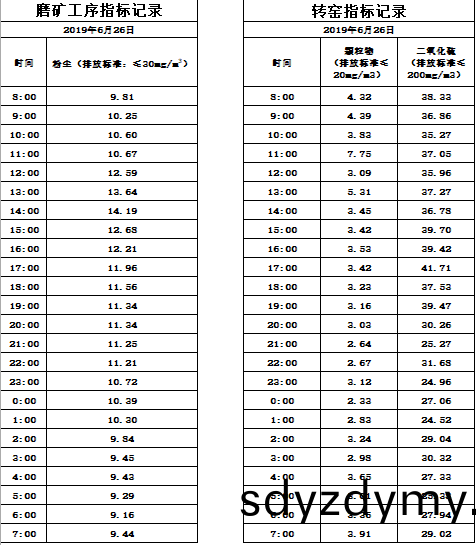 山(shan)東道(dao)恩(en)鈦業股(gu)份(fen)有限(xian)公司2019年(nian)6月26日(ri)磨鑛工序煙(yan)氣(qi)及(ji)山東道(dao)恩(en)鈦業股(gu)份(fen)有(you)限公(gong)司2019年6月26日(ri)磨鑛工序煙(yan)氣(qi)及轉(zhuan)窰煙(yan)氣指(zhi)標(biao)數(shu)據: