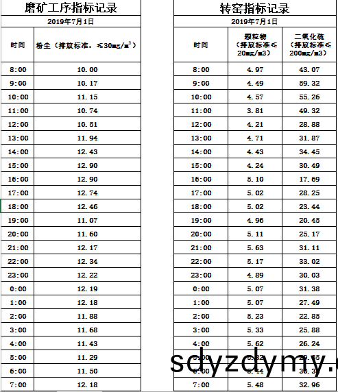 山東(dong)道(dao)恩鈦(tai)業股(gu)份有(you)限(xian)公司(si)2019年(nian)7月(yue)1日(ri)磨鑛工序煙氣及轉窰(yao)煙氣(qi)指標(biao)數(shu)據:山(shan)東(dong)道恩鈦(tai)業(ye)股份有限公司(si)2019年7月(yue)1日磨(mo)鑛工(gong)序(xu)煙氣及轉窰煙氣指標數(shu)據(ju):