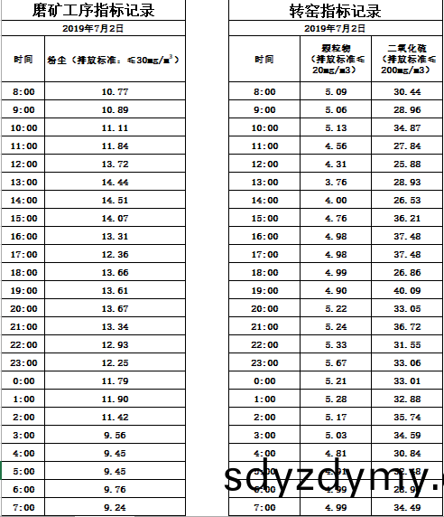 山東道恩(en)鈦(tai)業(ye)股(gu)份有限公司2019年(nian)7月2日(ri)磨(mo)鑛工序(xu)煙氣及(ji)轉(zhuan)窰煙(yan)氣(qi)指(zhi)標數(shu)據(ju):山東(dong)道恩鈦(tai)業(ye)股(gu)份(fen)有限公(gong)司(si)2019年7月2日磨(mo)鑛工序(xu)煙氣(qi)及轉(zhuan)窰煙(yan)氣(qi)指(zhi)標(biao)數據(ju):