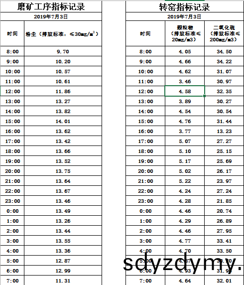 山東(dong)道恩鈦(tai)業股(gu)份(fen)有限(xian)公(gong)司(si)2019年7月3日磨鑛工序煙(yan)氣及轉窰(yao)煙(yan)氣指標(biao)數(shu)據(ju):山(shan)東道恩(en)鈦業(ye)股(gu)份(fen)有限(xian)公司(si)2019年7月3日磨鑛(kuang)工序(xu)煙氣及轉(zhuan)窰(yao)煙(yan)氣指標數(shu)據(ju):