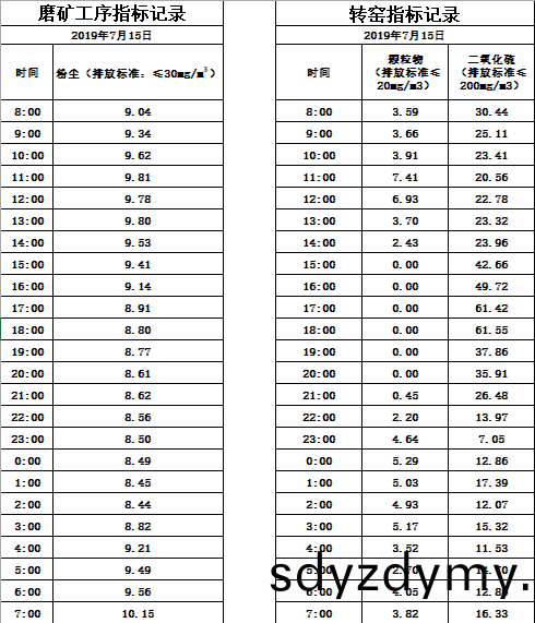 山(shan)東道恩(en)鈦業股份(fen)有(you)限公(gong)司2019年(nian)7月(yue)15日(ri)磨鑛(kuang)工序煙(yan)氣及轉(zhuan)窰(yao)煙氣(qi)指(zhi)標數(shu)據(ju):山(shan)東道(dao)恩(en)鈦業股(gu)份有(you)限(xian)公(gong)司(si)2019年7月15日(ri)煙(yan)氣數(shu)據(ju)