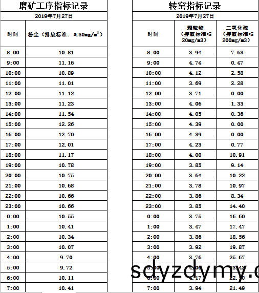 山東道(dao)恩鈦(tai)業股(gu)份(fen)有限(xian)公(gong)司(si)2019年7月(yue)27日(ri)磨(mo)鑛(kuang)工(gong)序煙(yan)氣及轉窰(yao)煙(yan)氣指標(biao)數(shu)據:山東(dong)道(dao)恩鈦(tai)業(ye)股份有限(xian)公司2019年(nian)7月27日(ri)煙(yan)氣數(shu)據