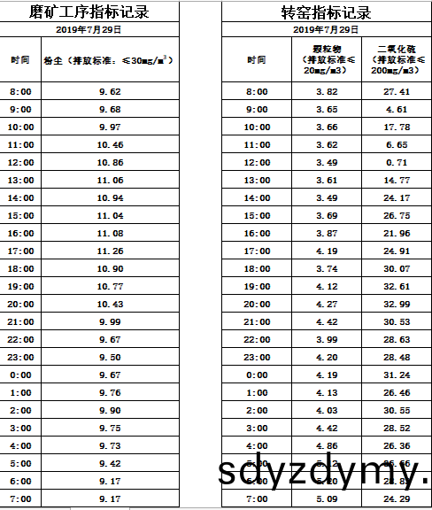 山(shan)東(dong)道恩鈦業(ye)股(gu)份(fen)有限公(gong)司(si)2019年7月(yue)29日(ri)磨鑛(kuang)工序煙(yan)氣(qi)及(ji)轉窰煙(yan)氣(qi)指標數(shu)據(ju):山(shan)東道恩(en)鈦業股份(fen)有限公司2019年7月29日(ri)煙(yan)氣數(shu)據(ju)
