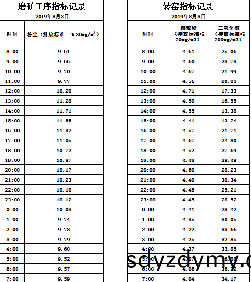 山東道恩(en)鈦業股(gu)份有限公司2019年(nian)8月(yue)3日(ri)磨(mo)鑛(kuang)工序(xu)煙(yan)氣及(ji)轉窰(yao)煙氣指標(biao)數(shu)據(ju):山東(dong)道恩(en)鈦(tai)業股(gu)份有限(xian)公(gong)司(si)2019年8月3日(ri)煙(yan)氣(qi)數(shu)據(ju)