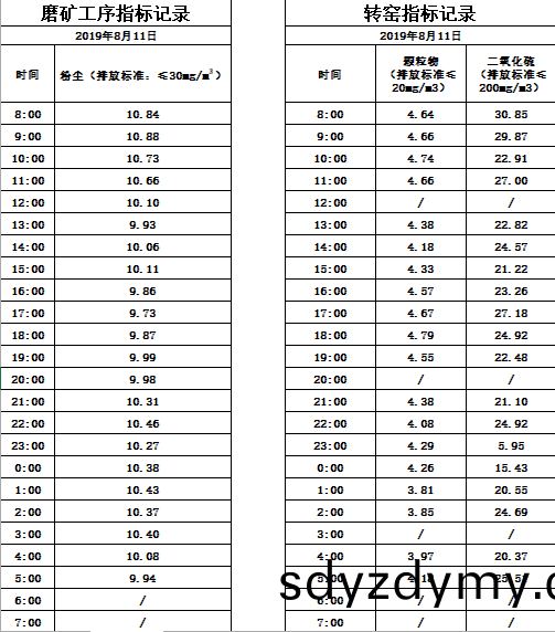 山東(dong)道恩(en)鈦業股份(fen)有(you)限公(gong)司(si)2019年8月(yue)11日磨鑛(kuang)工(gong)序煙(yan)氣(qi)及(ji)轉窰(yao)煙氣(qi)指標(biao)數(shu)據:山(shan)東道恩鈦業股份有(you)限公司2019年(nian)8月(yue)11日煙氣數(shu)據