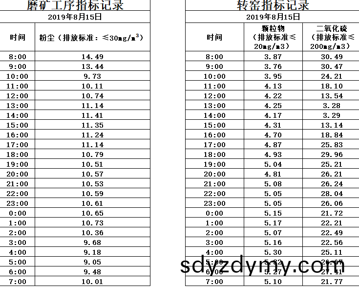 山東(dong)道(dao)恩鈦業(ye)股份(fen)有(you)限(xian)公司(si)2019年(nian)8月15日磨(mo)鑛工(gong)序煙氣及轉窰(yao)煙氣指標數據(ju):山東(dong)道(dao)恩(en)鈦(tai)業(ye)股份(fen)有限公司2019年(nian)8月(yue)15日煙氣數據