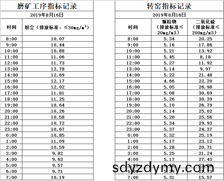山(shan)東(dong)道(dao)恩(en)鈦(tai)業股份有限公司(si)2019年(nian)8月(yue)16日磨鑛工序(xu)煙(yan)氣(qi)及轉窰煙氣(qi)指(zhi)標(biao)數(shu)據:山(shan)東道(dao)恩(en)鈦(tai)業股份有限(xian)公(gong)司(si)2019年(nian)8月16日煙氣(qi)數據