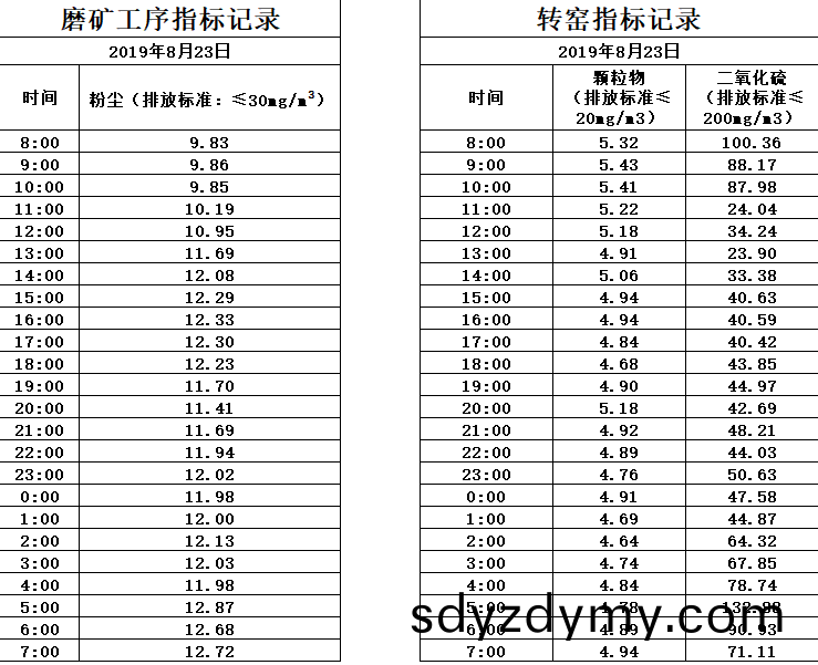 山東道恩鈦(tai)業(ye)股份(fen)有限公(gong)司2019年(nian)8月23日磨(mo)鑛工序(xu)煙氣(qi)及(ji)轉窰煙(yan)氣(qi)指(zhi)標(biao)數(shu)據(ju):山(shan)東(dong)道恩(en)鈦(tai)業(ye)股份有(you)限公(gong)司2019年(nian)8月(yue)223日煙(yan)氣(qi)數據(ju)