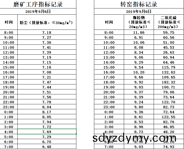 山東道恩鈦(tai)業股(gu)份(fen)有(you)限公(gong)司2019年9月6日(ri)煙氣(qi)數據(ju)