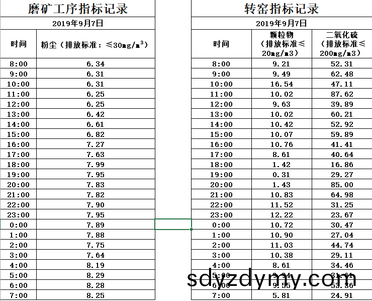 山東道(dao)恩(en)鈦業(ye)股份有限(xian)公(gong)司2019年9月7日(ri)磨鑛(kuang)工序煙氣及(ji)轉窰(yao)煙氣(qi)指(zhi)標數據:山(shan)東道(dao)恩(en)鈦業股份(fen)有限公(gong)司2019年(nian)9月(yue)7日煙(yan)氣數(shu)據