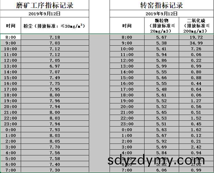 山東(dong)道(dao)恩鈦業股份有限(xian)公(gong)司2019年(nian)9月12日磨(mo)鑛工序煙(yan)氣及(ji)轉窰(yao)煙(yan)氣指(zhi)標(biao)數(shu)據(ju):山(shan)東(dong)道恩鈦(tai)業(ye)股份(fen)有(you)限(xian)公司2019年(nian)9月12日煙氣數據(ju)