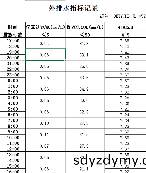山(shan)東(dong)道(dao)恩鈦(tai)業(ye)股(gu)份有(you)限(xian)公(gong)司(si)2019年(nian)9月15日外(wai)排水(shui)指(zhi)標(biao)數(shu)據:山(shan)東(dong)道(dao)恩鈦業(ye)股(gu)份(fen)有限公(gong)司2019年9月15日外排水(shui)指標