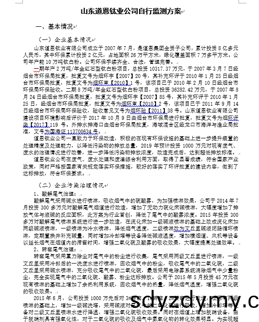 山(shan)東道恩鈦業(ye)股份有(you)限公(gong)司-自(zi)行(xing)監測方(fang)案(an)山東道(dao)恩(en)鈦(tai)業(ye)股份有限(xian)公(gong)司(si)-自行(xing)監(jian)測(ce)方(fang)案(an)