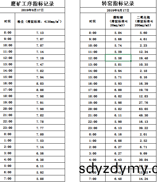 山(shan)東(dong)道恩(en)鈦(tai)業(ye)股(gu)份(fen)有限(xian)公(gong)司(si)2019年9月17日磨(mo)鑛工(gong)序(xu)煙氣(qi)及轉窰煙氣(qi)指(zhi)標數據(ju):山(shan)東(dong)道恩鈦(tai)業(ye)股(gu)份有限(xian)公司2019年(nian)9月17日(ri)煙氣(qi)數(shu)據(ju)