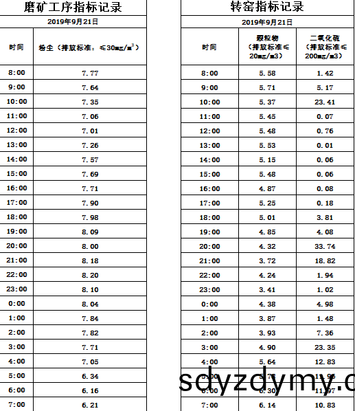 山(shan)東(dong)道(dao)恩(en)鈦(tai)業(ye)股份(fen)有(you)限(xian)公司(si)2019年(nian)9月21日(ri)磨(mo)鑛(kuang)工(gong)序煙(yan)氣(qi)及轉(zhuan)窰煙氣(qi)指(zhi)標(biao)數據:山東道(dao)恩鈦業股份(fen)有(you)限(xian)公司2019年(nian)9月(yue)21日(ri)煙(yan)氣(qi)數(shu)據