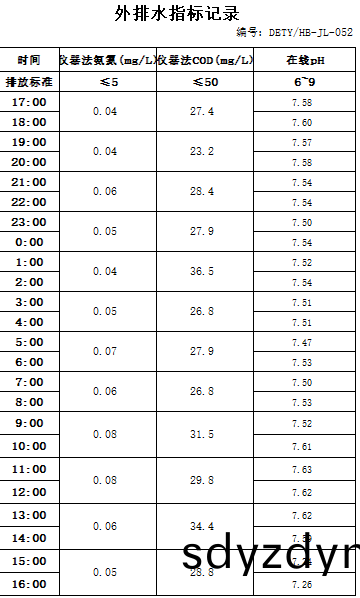 山東(dong)道(dao)恩鈦(tai)業(ye)股(gu)份(fen)有限公(gong)司(si)2019年(nian)9月(yue)21日(ri)外排水指(zhi)標數據(ju): 山東道(dao)恩(en)鈦(tai)業(ye)股份(fen)有(you)限(xian)公司(si)2019年9月21日外排水指(zhi)標
