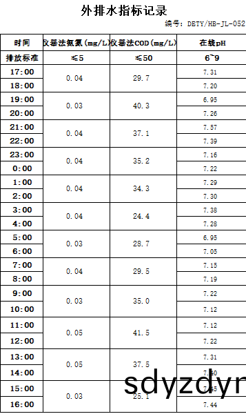 山東道恩鈦業(ye)股份(fen)有限公(gong)司2019年(nian)10月7日外排水(shui)指(zhi)標數據: