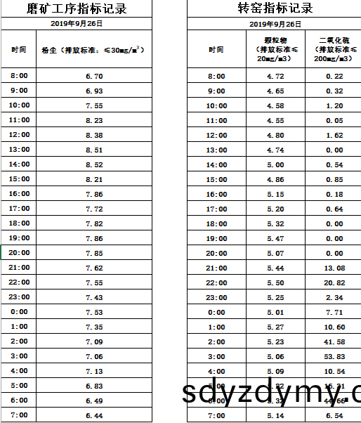 山東(dong)道(dao)恩鈦(tai)業(ye)股份(fen)有(you)限公(gong)司2019年(nian)9月26日(ri)煙氣數(shu)據