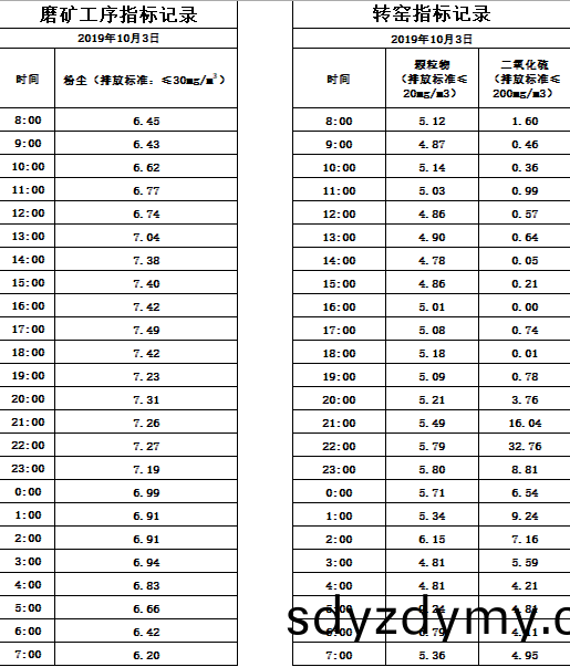 山(shan)東道(dao)恩(en)鈦業(ye)股份有限公司2019年10月3日(ri)磨(mo)鑛工序煙(yan)氣及(ji)轉窰(yao)煙氣指(zhi)標(biao)數(shu)據:山(shan)東道恩鈦(tai)業股份有(you)限公(gong)司2019年(nian)10月3日(ri)煙氣(qi)數(shu)據