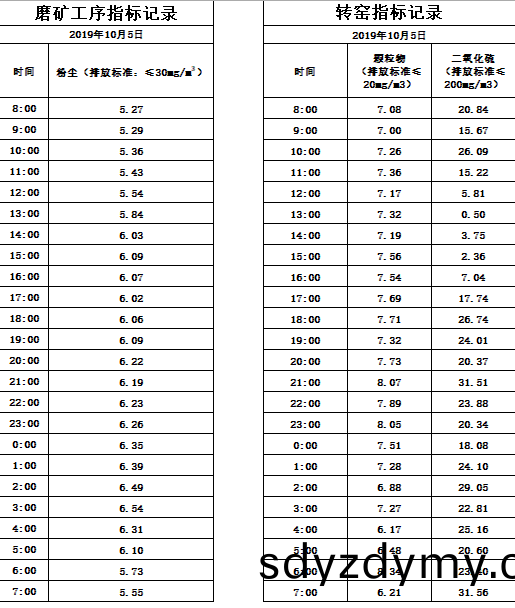 山東道恩鈦業股(gu)份(fen)有限公司(si)2019年(nian)10月5日磨(mo)鑛(kuang)工(gong)序煙氣及轉窰煙氣指標數據:山(shan)東(dong)道(dao)恩鈦業股(gu)份(fen)有(you)限(xian)公司2019年10月5日煙氣數(shu)據(ju)