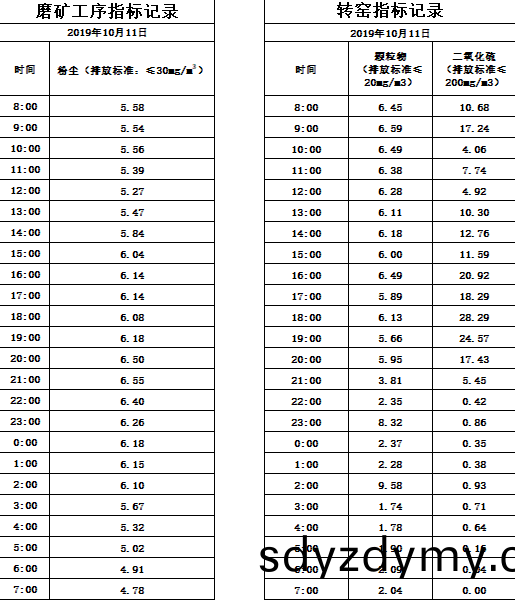 山(shan)東(dong)道(dao)恩鈦業(ye)股份(fen)有(you)限公(gong)司2019年10月(yue)11日(ri)磨鑛工(gong)序(xu)煙氣(qi)及(ji)轉(zhuan)窰煙氣指標(biao)數(shu)據:山(shan)東(dong)道恩鈦業股(gu)份(fen)有限(xian)公司2019年10月11日(ri)煙(yan)氣數(shu)據(ju)